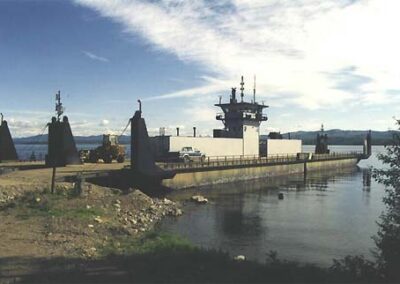 The new ferry, the Babine Charger, was constructed by Finlay Navigation on the shores of Babine Lake over the spring and summer of 1993. Finlay Navigation utilized many members of the construction crew that worked on Finlay Navigation 1 and Finlay Navigation 2 projects.