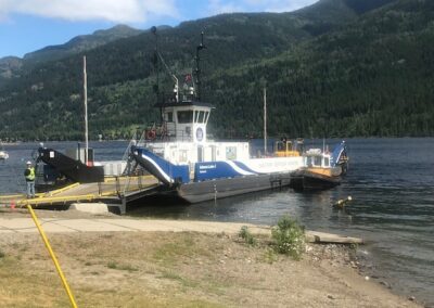 WaterBridge Steel constructed and delivered the Adams Lake II cable ferry to the Ministry of Transportation and Infrastructure in May 2017. The vessel was built in Nakusp, BC, and assembled on the shores of Adams Lake, BC.